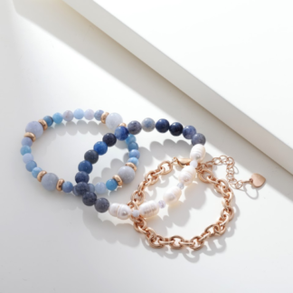 Matte Gold Bracelet – Blue Stone + Pearls
