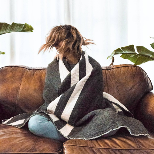 Crinkle Throw Stripe – Charcoal